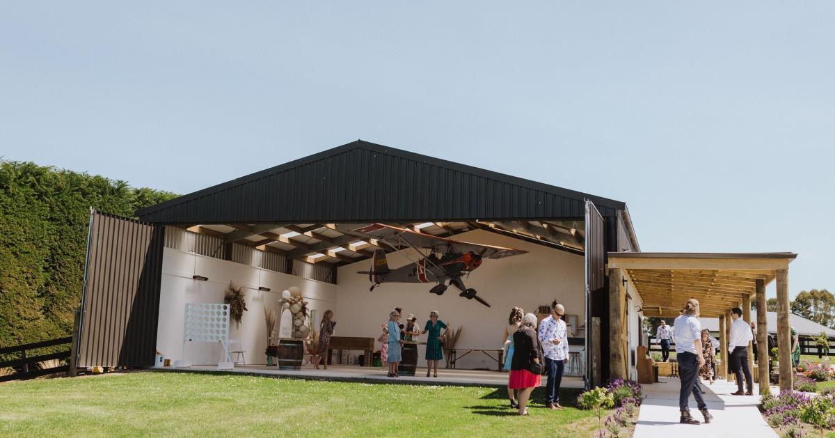 •The Farm Chapel, nestled in the serene rural landscape of Southland, offers a unique and picturesque setting for weddings. This venue combines the charm of a restored historic chapel with the versatility of modern event spaces, making it an ideal choice for couples seeking a memorable and personalised wedding experience. The venue features the beautifully restored Edendale church, which provides an intimate setting with its original stained-glass windows and wooden interiors, comfortably seating up to 50 guests. For larger gatherings, The Hangar and adjoining Stretch Tents offer expansive spaces that can accommodate up to 138 guests, ensuring ample room for both seated dinners and cocktail-style receptions.The Farm Chapel is particularly suited for those who appreciate a rustic and tranquil environment, with the added charm of rural countryside views and the soothing sounds of nature. The venue's flexibility is highlighted by its various wedding packages, which cater to different guest numbers and preferences, ensuring that each event is tailored to the couple's vision. The inclusion of vintage wooden trestle tables, white folding chairs, and elegant lighting options such as festoons and fairy lights, adds to the venue's rustic elegance.Additionally, The Farm Chapel offers practical amenities such as onsite parking, bathroom facilities, and outdoor umbrellas, enhancing the comfort and convenience for guests. The presence of 'Pixi the Plane' in The Hangar adds a unique touch to the venue, making it a conversation starter and a memorable feature for guests.Overall, The Farm Chapel provides a comprehensive and charming venue option for weddings, combining historical charm with modern amenities, all set against the backdrop of Southland's stunning rural landscape. This makes it a perfect choice for couples looking to celebrate their special day in a setting that is both beautiful and unique.